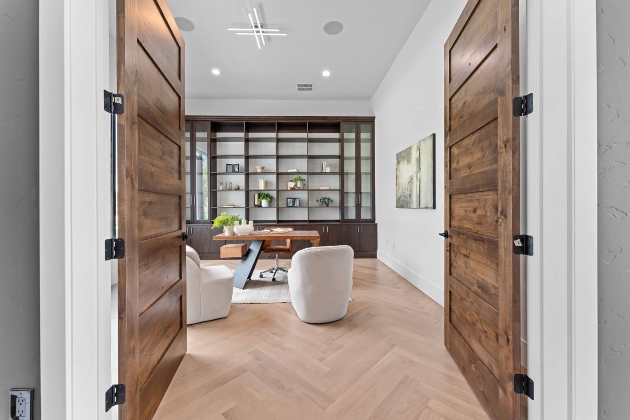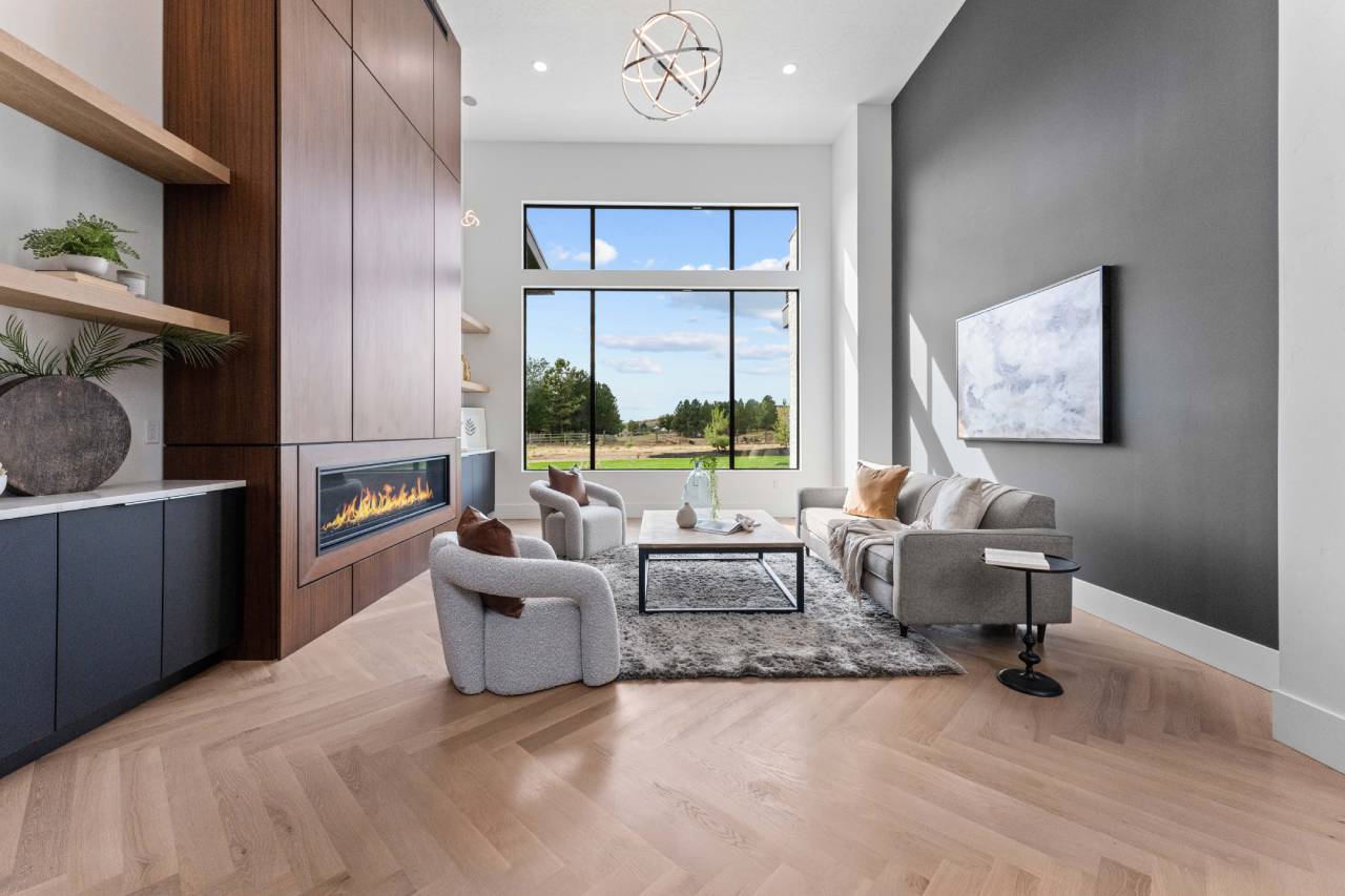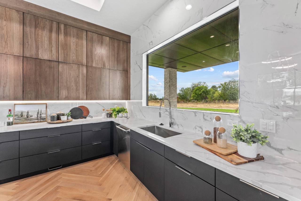 Taylor Jene Homes brings you Haven. Enjoy this tastefully remodeled sanctuary combining accents of wood, glass, and marble. Haven blends luxury with ambiance. Wood accents are splashed throughout the home to add a touch of rustic charm, while the cool-tone hexagon backsplashes in the kitchen and bathrooms add a modern twist. Crisp white vein countertops with a waterfall edge serve as a stunning focal point in the kitchen. Enjoy elegance and style. Multiple unique fireplaces provide cozy gathering spots indoors and outdoor nooks overlooking the spanning lawns complete this stunning property.