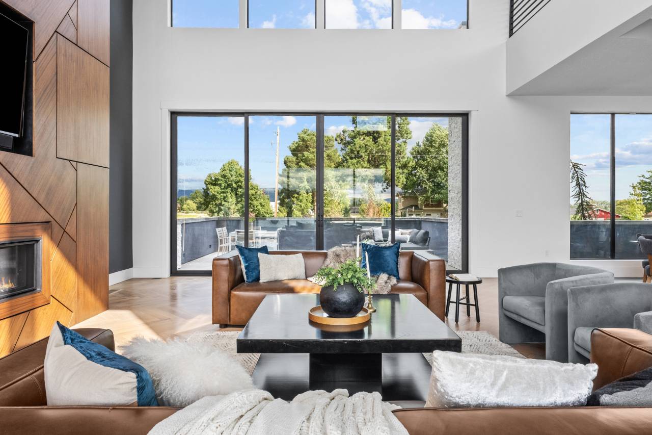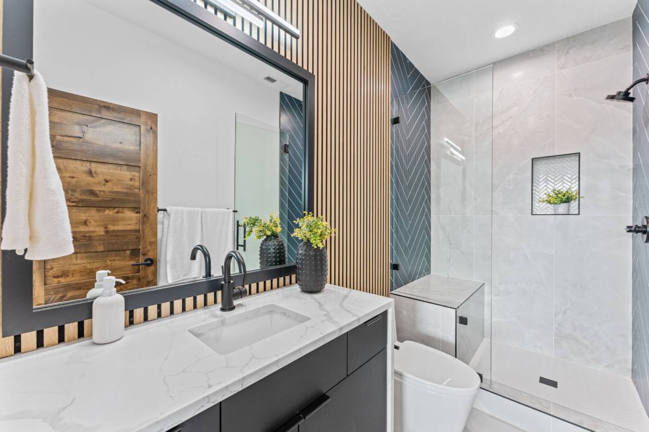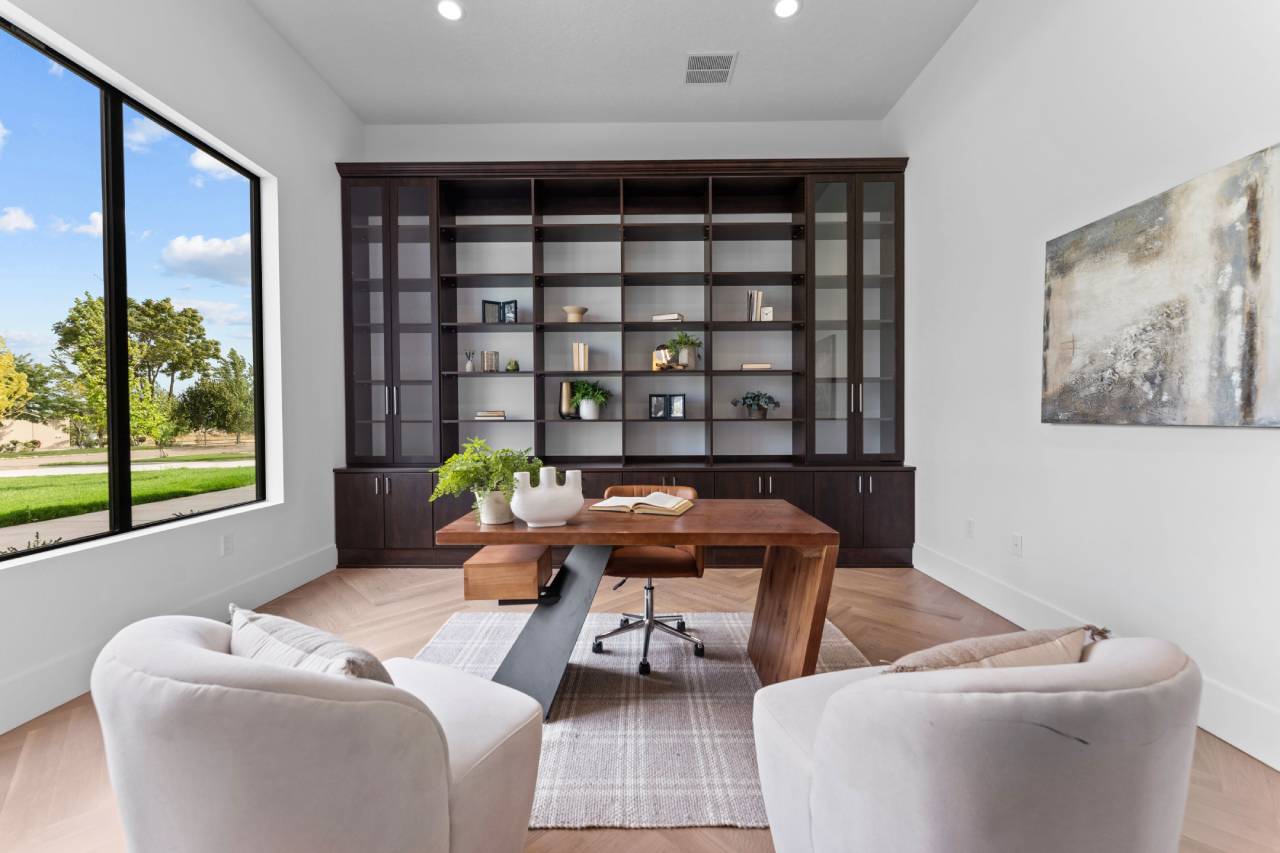 Taylor Jene Homes brings you Haven. Enjoy this tastefully remodeled sanctuary combining accents of wood, glass, and marble. Haven blends luxury with ambiance. Wood accents are splashed throughout the home to add a touch of rustic charm, while the cool-tone hexagon backsplashes in the kitchen and bathrooms add a modern twist. Crisp white vein countertops with a waterfall edge serve as a stunning focal point in the kitchen. Enjoy elegance and style. Multiple unique fireplaces provide cozy gathering spots indoors and outdoor nooks overlooking the spanning lawns complete this stunning property.