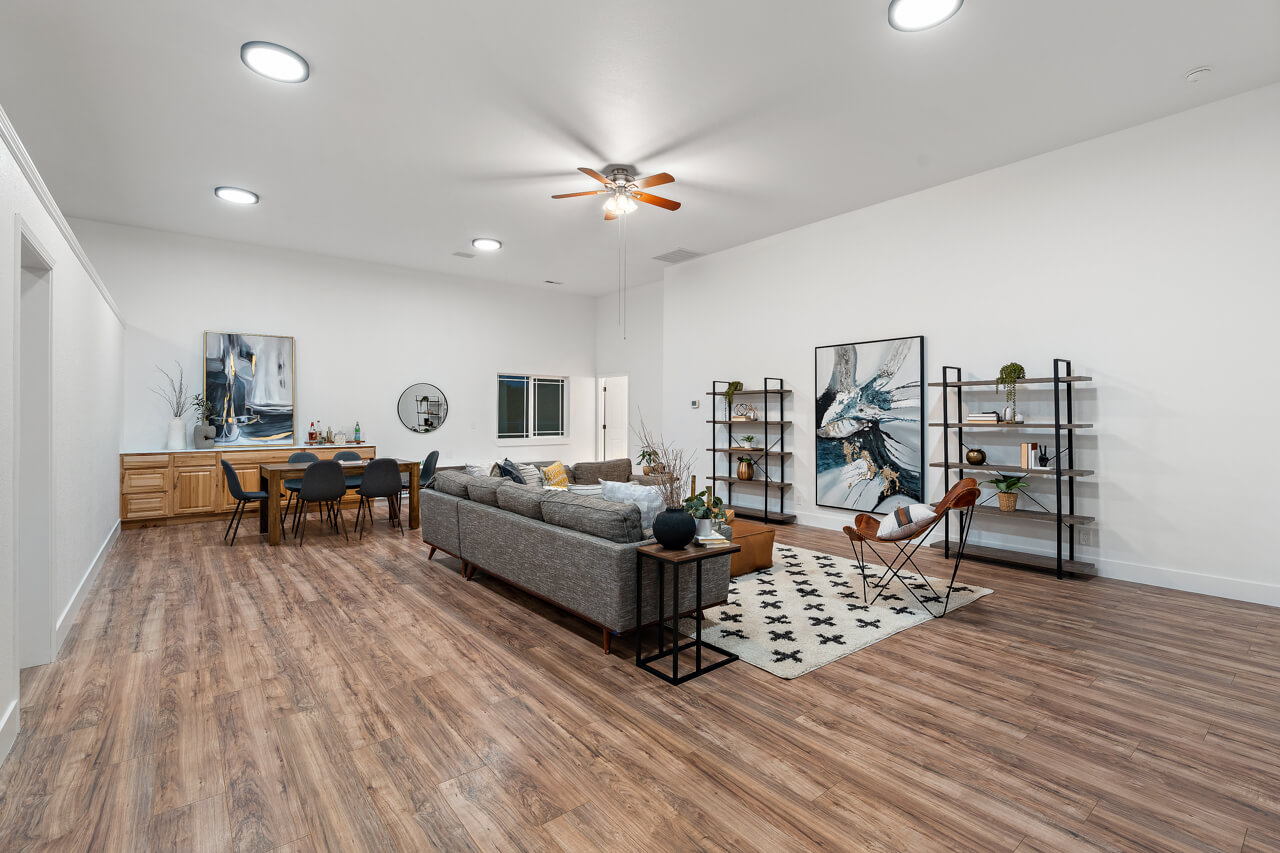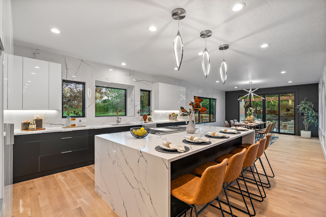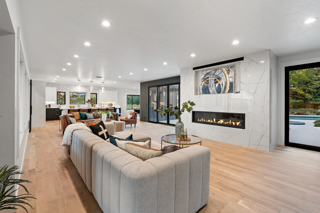 This exceptional remodel features an ADU with a game room and fitness area, alongside a main house boasting oversized garage bays and high-end finishes. A standout feature is the double-sided fireplace, enjoyed from both inside and outside the home. A spacious back patio, complete with a pergola, pool, and tranquil koi pond, offering endless relaxation and entertainment possibilities. The Bungalow feels like a brand new build after a meticulous remodel that left no surface untouched.
