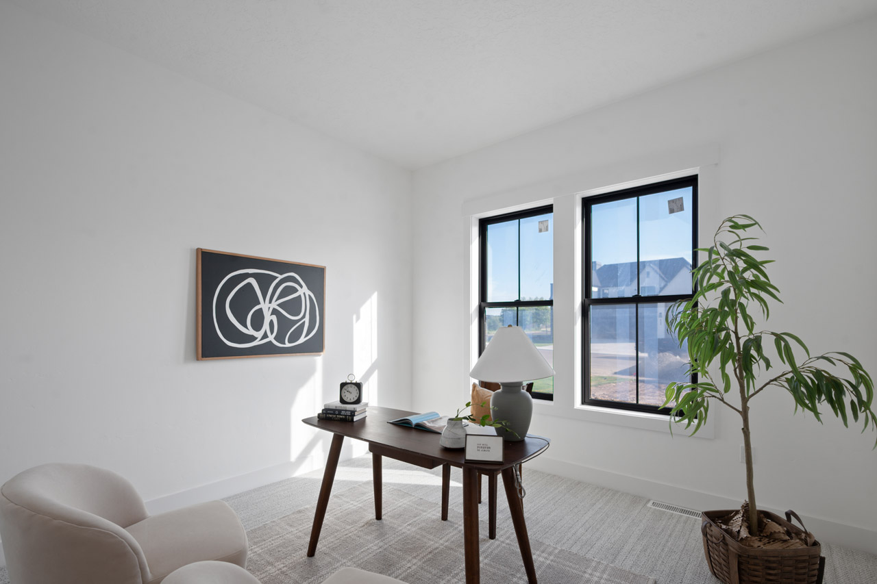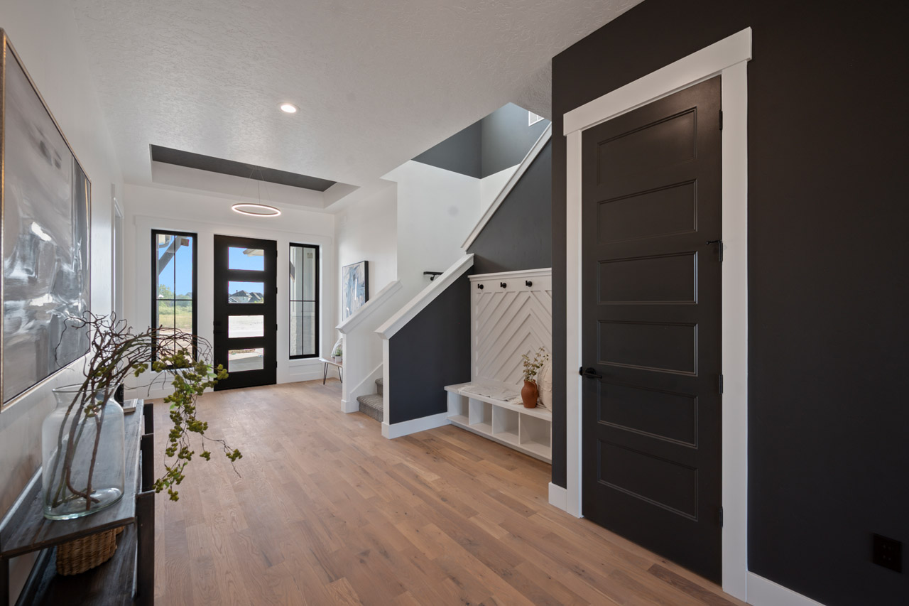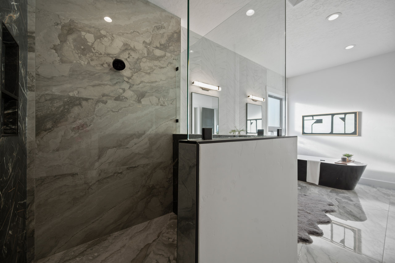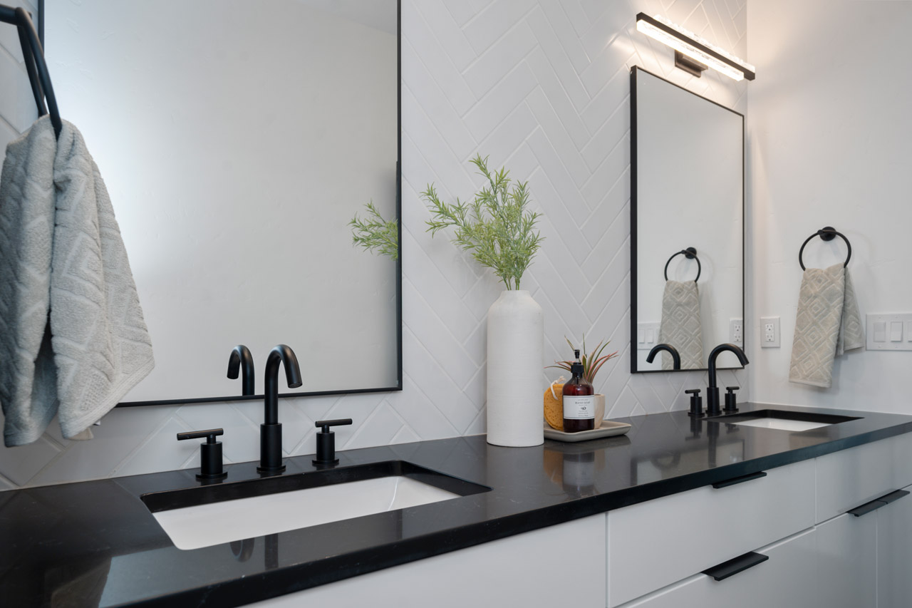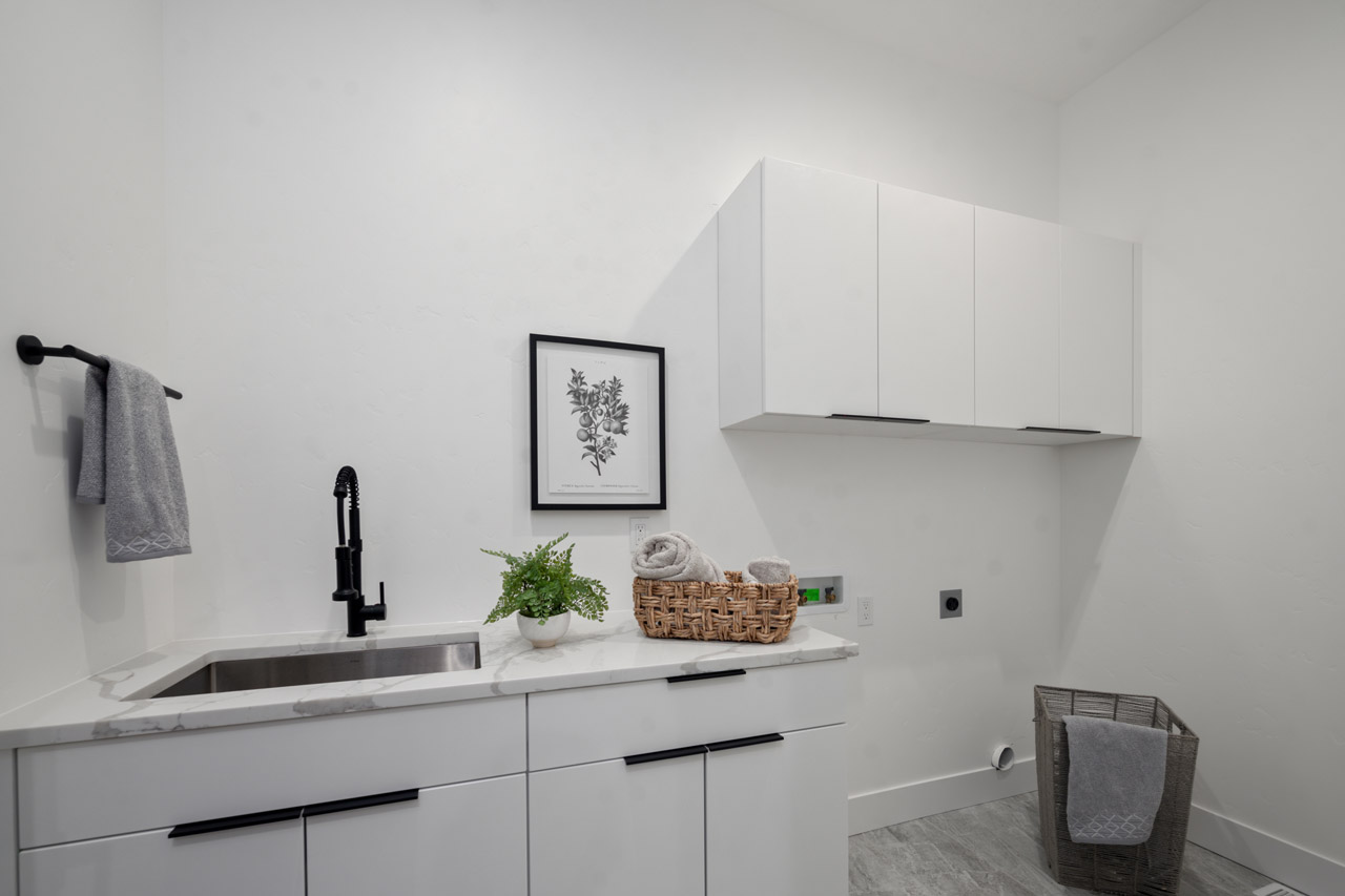 This exceptional home features a captivating herringbone pattern, showcased in the kitchen backsplash tile and carried through the bathrooms, adding a touch of sophistication to every space. The master bedroom boasts a tray ceiling, adding a sense of grandeur to the room. Black windows beautifully complement the black metal faucets and interior doors, creating a cohesive and stylish aesthetic throughout the home. Outside, the roof showcases two materials—black metal and black shingle—adding a modern flair to the exterior. From the impeccable craftsmanship to the thoughtful design elements, Big Wood Way is a testament to luxurious living at its finest.